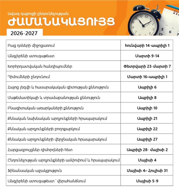 Գրանցվիր և մասնակցի՛ր անվճար խորհրդատվական հանդիպում-դասերի, որոնք կուղղորդեն քեզ պատրաստվելու ընդունելության քննություններին: