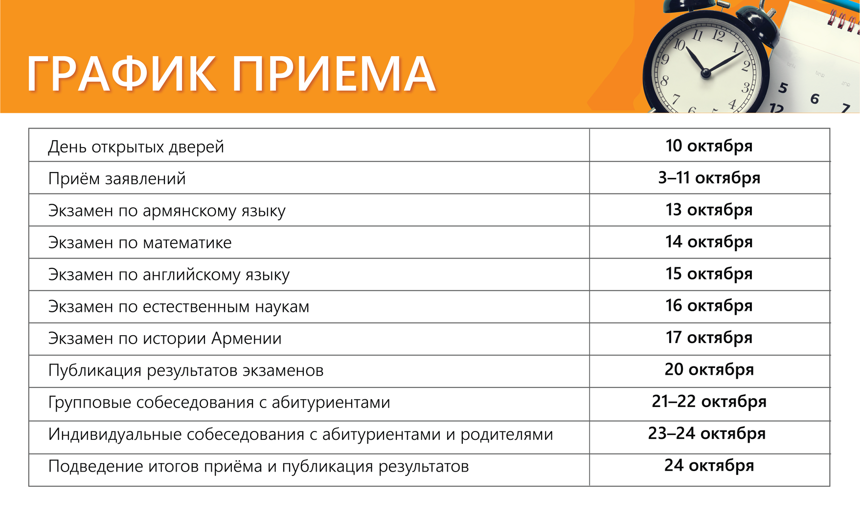 Поступающие и их родители по эл. почте получают информацию о графике приёма на текущий год и тематике каждого вступительного экзамена.